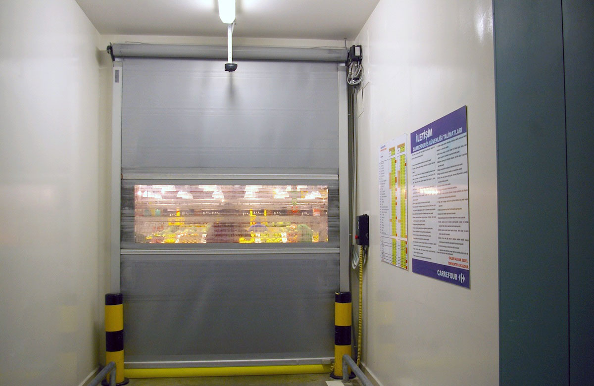 1,5 m/sn kadar hızla çalışabilen PVC sarmal kapı